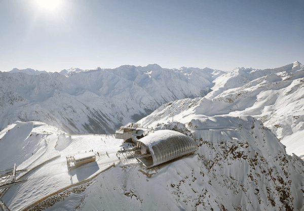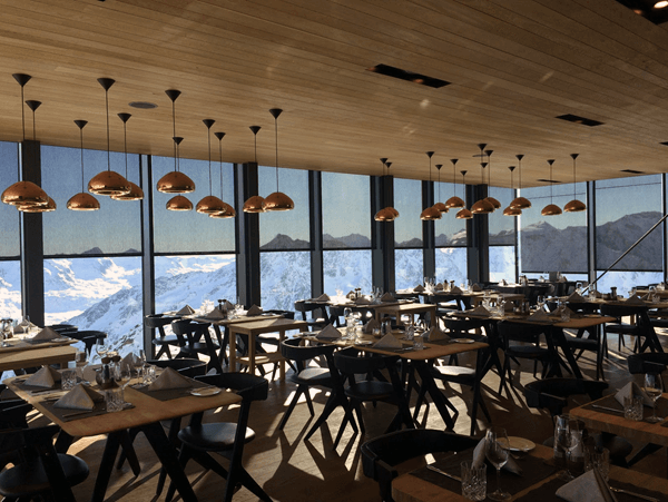 Bygningen, der har en glasfacade på 900 m2, ligger i 3048 meters højde og har en fuldstændig fantastisk udsigt over de østrigske alper.